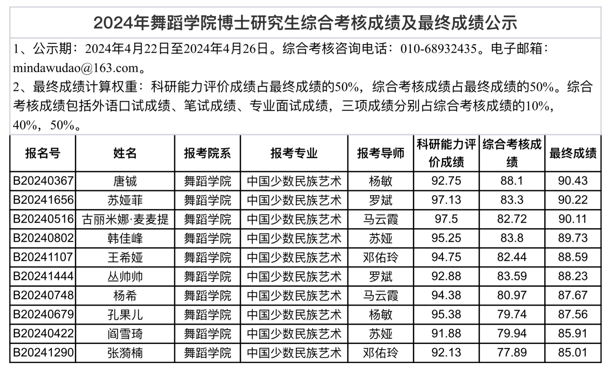 2024年麻豆做爱 博士研究生综合考核成绩及最终成绩公示