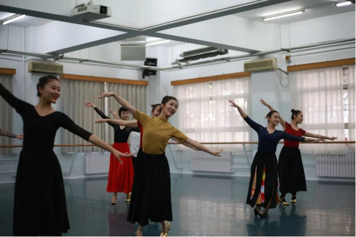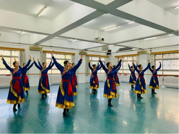 美哈阿依·喀依尔老师教授维吾尔族舞蹈课程、铁木尔老师教授蒙古族舞蹈课程、谭伟老师教授基本功课程;此外还有敖登格日勒老师的蒙古族舞蹈课程的观摩学习、由苏娅菲老师主讲的“民族舞蹈编创”讲座。