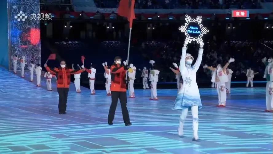 手持雪花引导牌,身穿雪花小礼裙,我院2020级表演女班张梦颖及2020级英才女班刘思雨两名学子作为阿塞拜疆代表团引导员及新西兰代表团引导员,迈着自信的步伐向观众走来,向世界走来,她们是冬奥会开幕式上一道亮丽的风景,向世界展现了中华民族意气风发、朝气蓬勃的精神面貌。