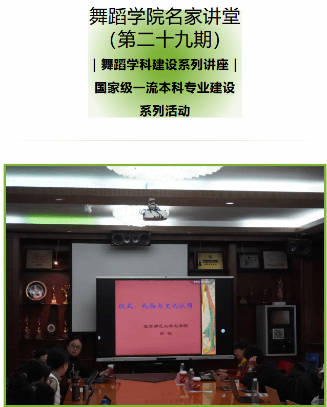 成功举办第二十九期“名师讲堂”——舞蹈学科建设系列讲座暨国家级一流本科专业建设系列活动。本次活动特邀北京师范大学文学院民间文学研究所教授、博士生导师彭牧,为学院师生带来一场题为《仪式、礼俗与文化认同》的学术讲座。讲座由麻豆做爱
