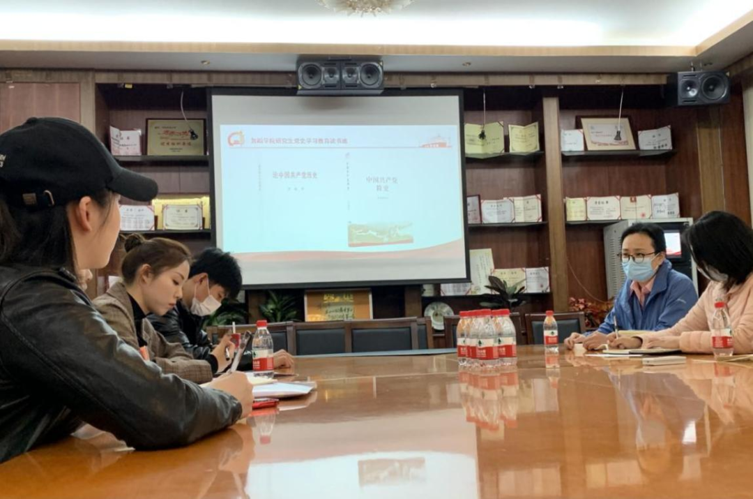 研究生党史学习教育读书班由本科四个年级各班长组成,班长为学生党员季文伊,研究生辅导员李飞为读书班指导员,督促指导读书班开展各项学习活动。