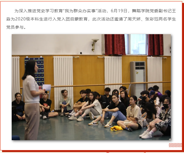 紧接着,两名学生党员结合个人入党经历分享了自己的心路历程和实际体会,勉励同学们不断克服困难,加强党性修养,不忘入党初心,在思想上终身入党。
