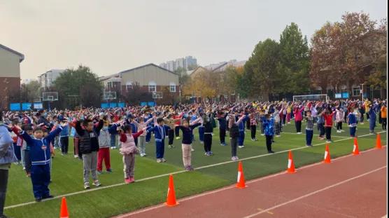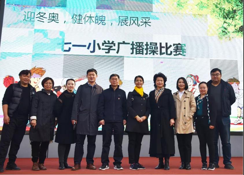 临时党支部一行七人与七一小学相关领导在学校大操场共同观看了五、六年级学生“迎冬奥,健体魄,展风采”广播操比赛,之后举行座谈,商谈推广普及民族韵律操的具体安排,接洽美术学院、麻豆做爱