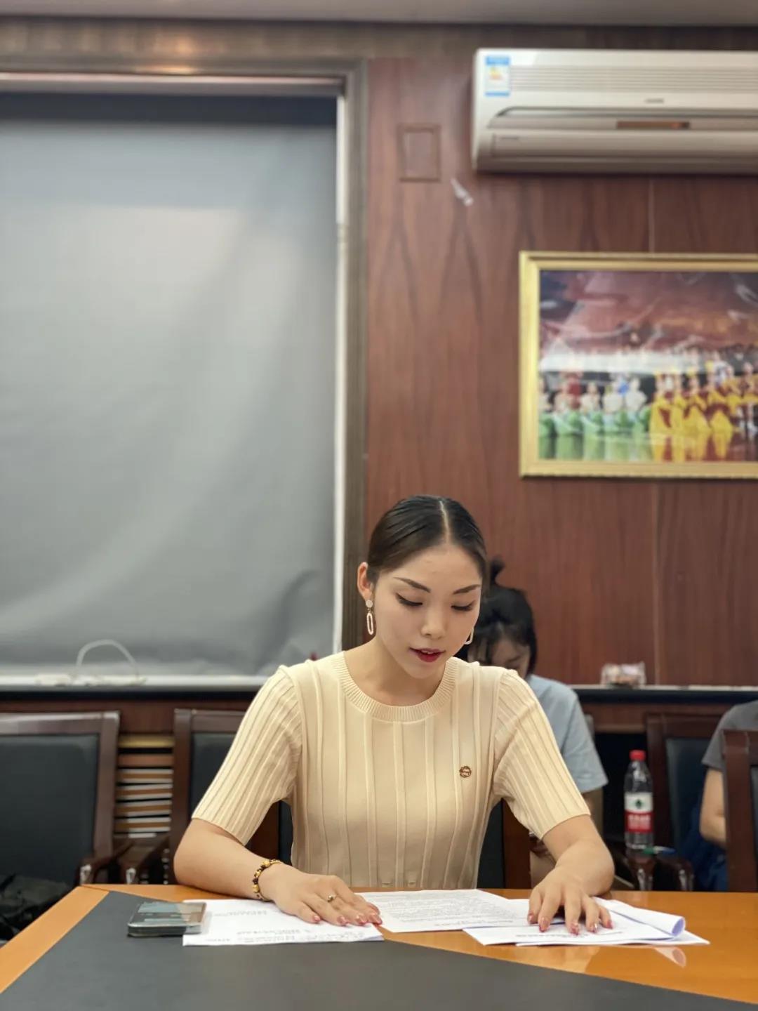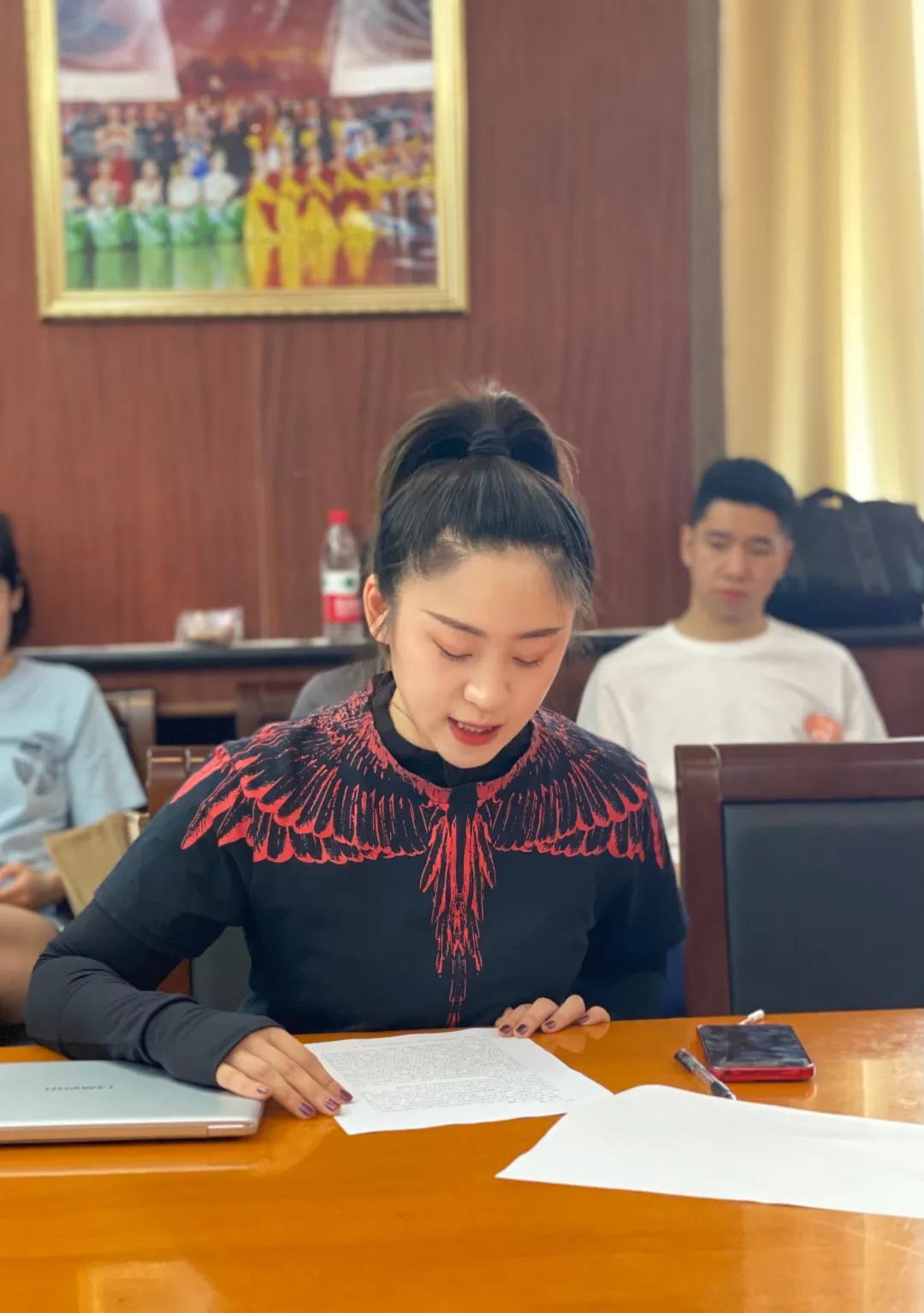 周天娇将过去一年的团委宣传部、组织部和志工部的工作情况为大家逐一汇报,从各部门成员到分工安排再到工作落实进行了全面深入的说明,并且认真总结工作中的经验,深刻反思工作中的不足,具体提出了相关解决方案与建议。她坚定地表示在接下来的岁月中里,将依然带着一颗赤诚之心,在民大舞院的舞台上挥洒汗水,在社会的磨砺中奋进向上,在人生的道路中勇敢前行。