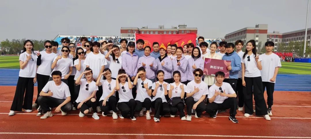 党委书记马娟,党委副书记王淼,团委书记赵子嘉以及各级班主任、辅导员也都参与到本次运动会开幕式的方阵中,带领我院健儿们迈着矫健而有力的步伐走向主席台,器宇轩昂,英姿飒爽,用无限青春与活力展示了舞院学子的朝气蓬勃。此外,老师们还纷纷积极参加运动会的各项比赛,和同学们共同以饱满的热情与速度拼搏,为舞院的健儿们加油鼓劲。