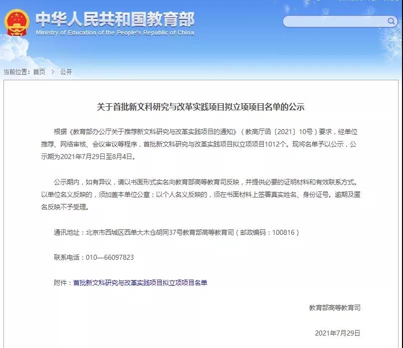喜报 | 麻豆做爱 获批教育部首批新文科研究与改革实践项目立项