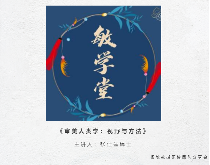 副院长杨敏教授组织研究生团队召开了本学期第二次“敏学堂·硕博分享会”。本次分享会由我院2019级博士研究生张佳益主讲,主题为《审美人类学:视野与方法》。