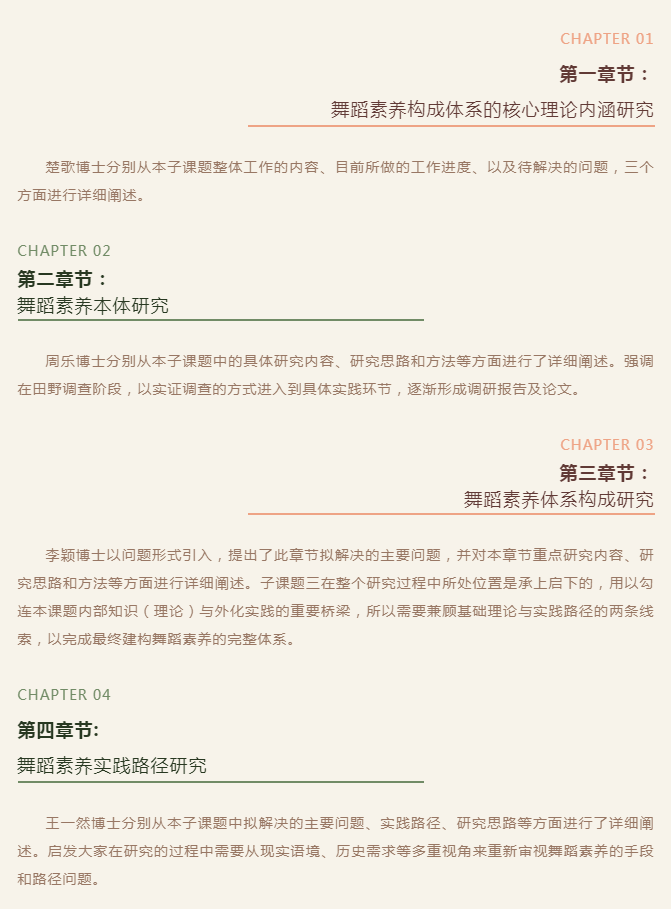 副院长杨敏教授组织项目团队成员召开了关于《美学视野下舞蹈素养的构成体系与实践路径研究》的项目研讨会,此次研讨会的主要内容是由子项目的负责人对所负责的章节进行研究内容的概述。
