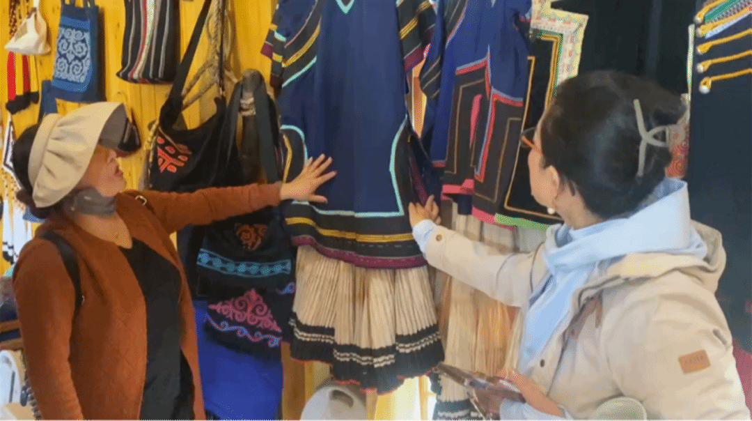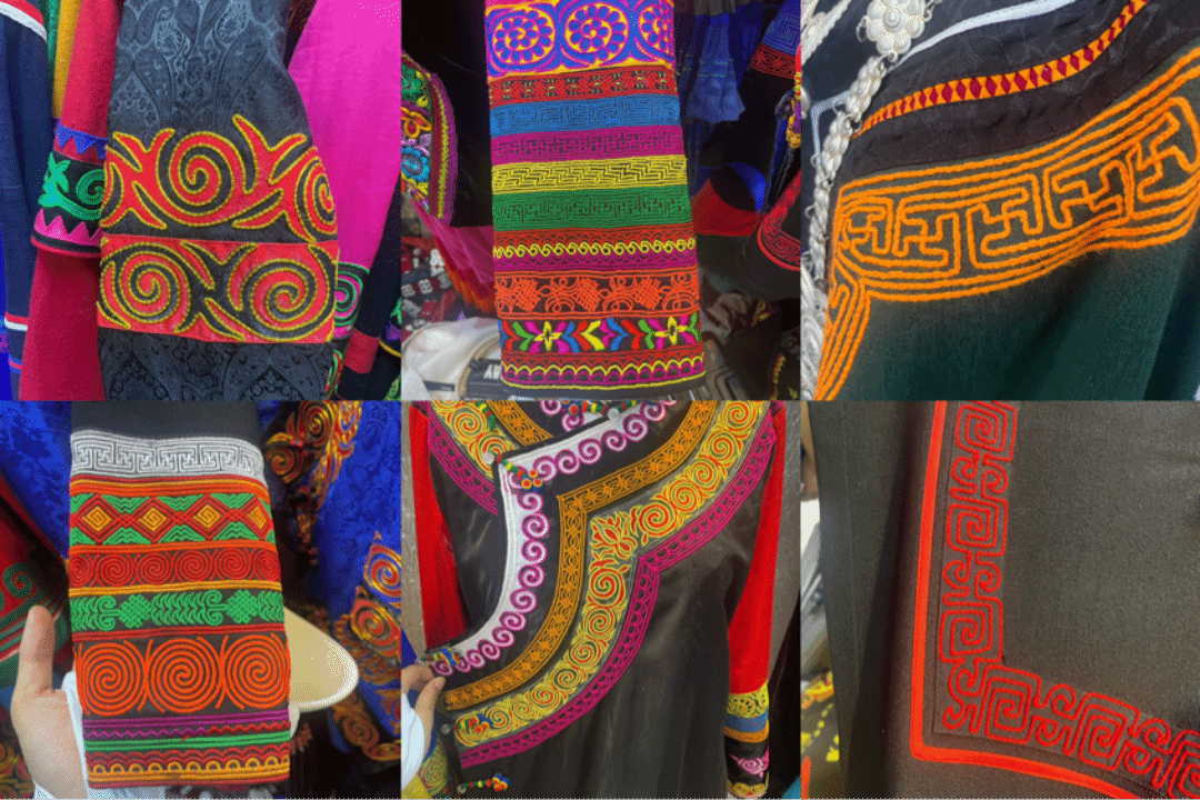 期间,沙呷阿依教授还亲自向2021级研究生们介绍了彝族服饰上羊角纹、火镰纹、窗格纹等精美的刺绣图案,并帮助大家一一辨认了昭觉、美姑、甘洛、普格等地区彝族服饰的不同样式风格,使调研团在领略彝家刺绣的精湛技艺的同时,进一步了解了凉山彝族地区的多元服饰文化。