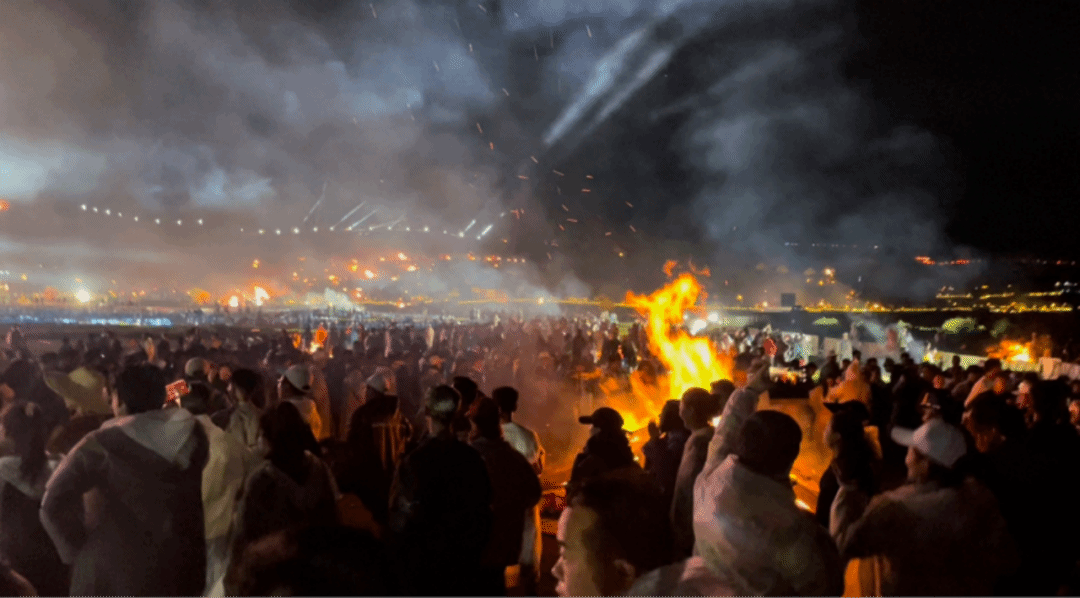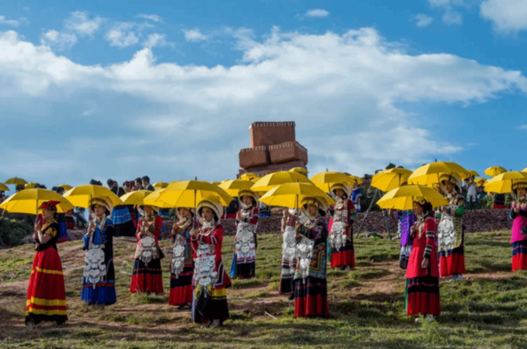 夜晚,随着远山的星火传向会场,火把节迎来狂欢高潮。一个个火堆被依次点燃,人们竞相奔走、点燃火把,驱逐邪祟,祈祷吉祥。此时的谷克德,已成为了火的海洋。调研团与当地各族人民一起围着熊熊篝火堆,跳起达体舞,在云端湿地尽情高歌,领略彝族文化风情。