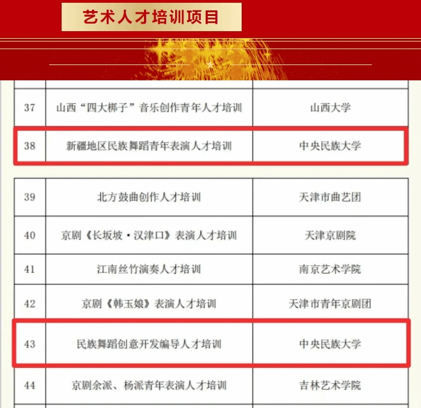 多年的办学优势和项目经验,充分挖掘新疆丰富的地域文化和民族民间舞蹈艺术资源,通过集中教学、表演实践、采风调研、成果展演等培训内容,致力于培育一批舞蹈功底扎实、艺术素养深厚、表演水平高超、艺术视野广阔的新疆各地区各民族的青年舞蹈表演人才。
