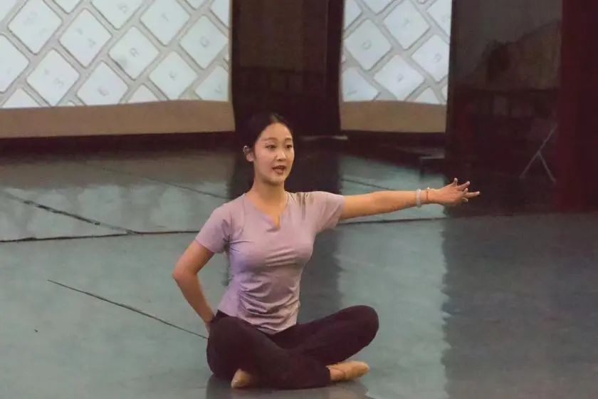 22级舞蹈专业研究生陈晓莉讲授了傣族典型技术技巧,她的授课对象为中专五年级学生。在示范中讲述了傣族舞蹈中典型技术技巧原地盖脚点转和斜展翅舞姿转,并与蒙古族、维吾尔族、藏族舞蹈中的转进行了对比,强调民族性。