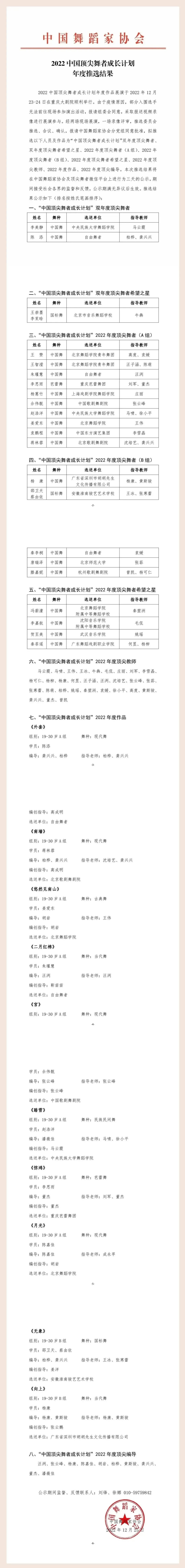 2022年12月23—24日在重庆大剧院展演了2022中国顶尖舞者成长计划年度作品,本院优秀学生赵浩洋、蔡宛凌、樊婧怡、郝雪妍(因疫情原因未到现场)、王磊森(因疫情原因未到现场)表演作品成功入围。
