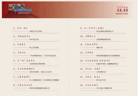 本次汇演由中国舞蹈家协会与江西省文学艺术界联合会联合主办,从全国各推荐单位精心推荐的67个优秀作品中,遴选出31个舞蹈作品,组成了两场精彩纷呈的晚会进行展示。